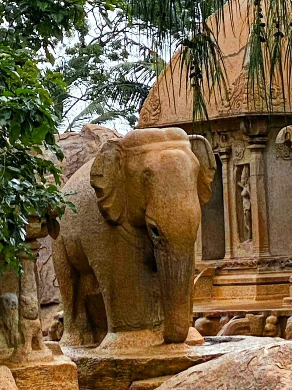 Meet the Pallava Elephant - alongside a Rock Cut Temple (side view of Draupadi Ratha)